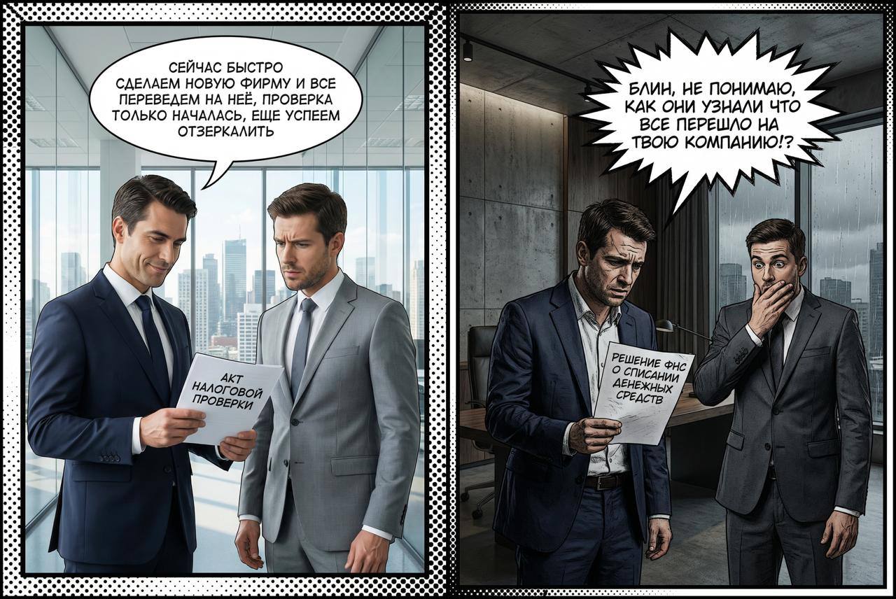 Какая мысль приходит в голову человеку, получившему Акт проверки на 50–100 млн и хорошо понимающему, что слава богу, в Акт еще попало не всё? «А почему бы не бросить фирму и не начать всё то же самое